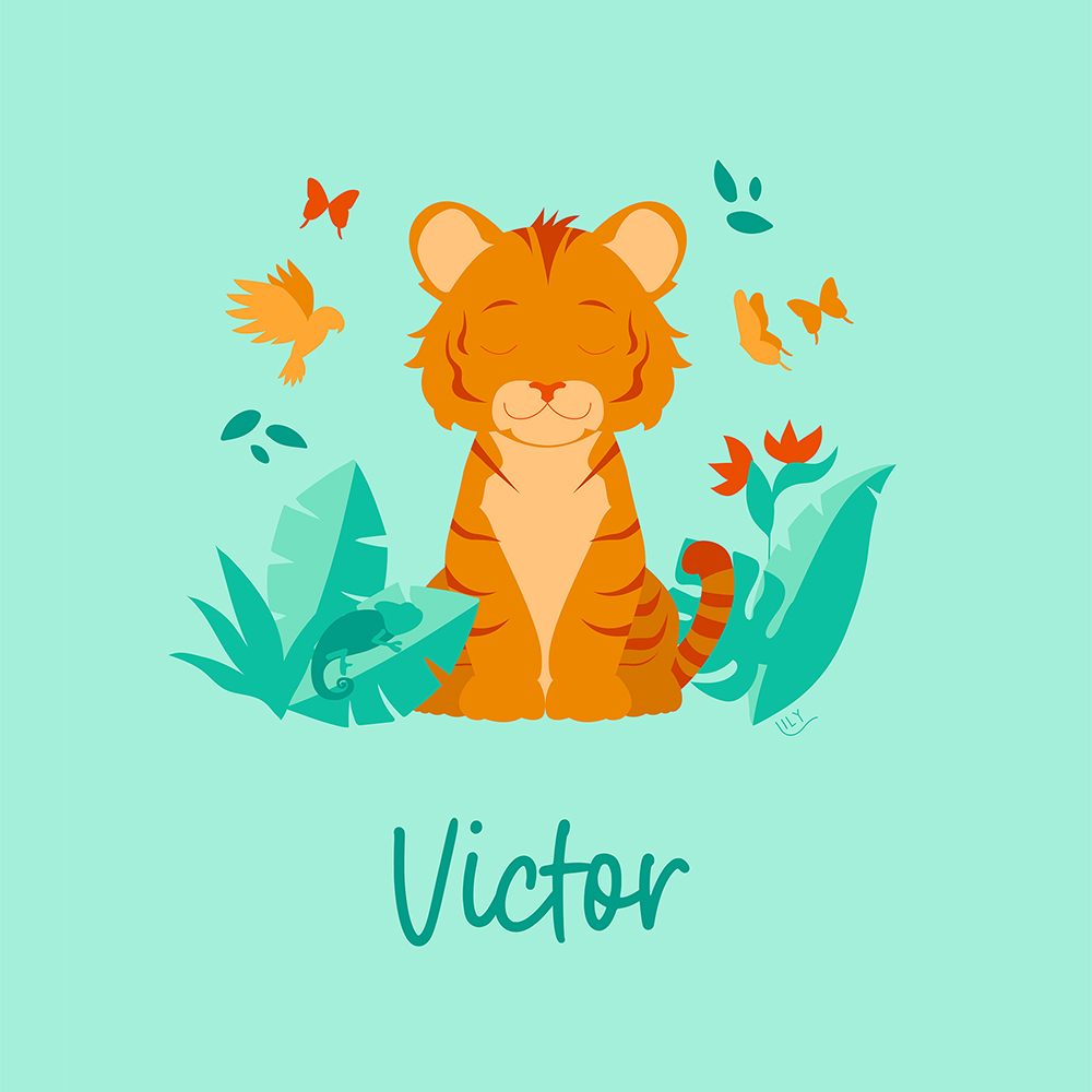 Enfin le dessin Victor est une commande client : un poster sur le thème de la jungle, imaginé pour célébrer la naissance de leur petit garçon.